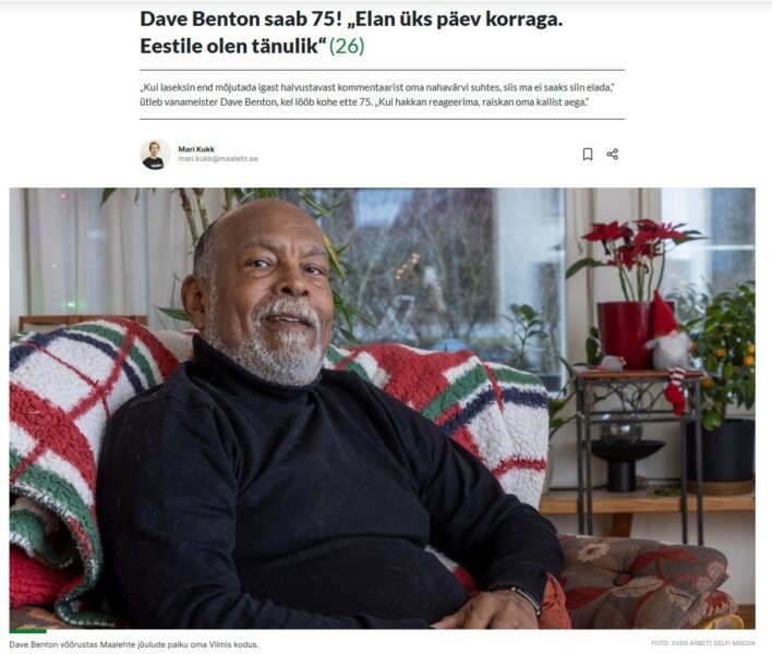 Ajakirjanik Mari Kukk on avaldanud 25. jaanuari Maalehes portreeloo „Dave Benton saab 75! „Elan üks ...