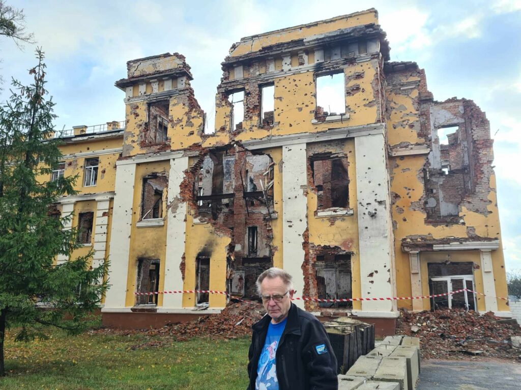 Tunnuspilt: loo autor Harkivis hävitatud koolimaja juures.