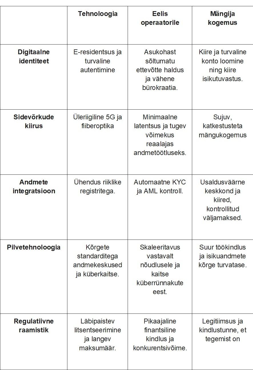 See unikaalne digitaalne süsteem pole loonud mugavusi vaid kohalikele elanikele, vaid on muutunud ka atraktiivseks rahvusvahelistele ettevõtetele, eriti hasartmängusektoris. iGaming ehk veebipõhine hasartmängude valdkond nõuab äärmiselt stabiilset, turvalist ja kiiret infrastruktuuri, et pakkuda mängijatele sujuvat kogemust sõltumata nende asukohast.