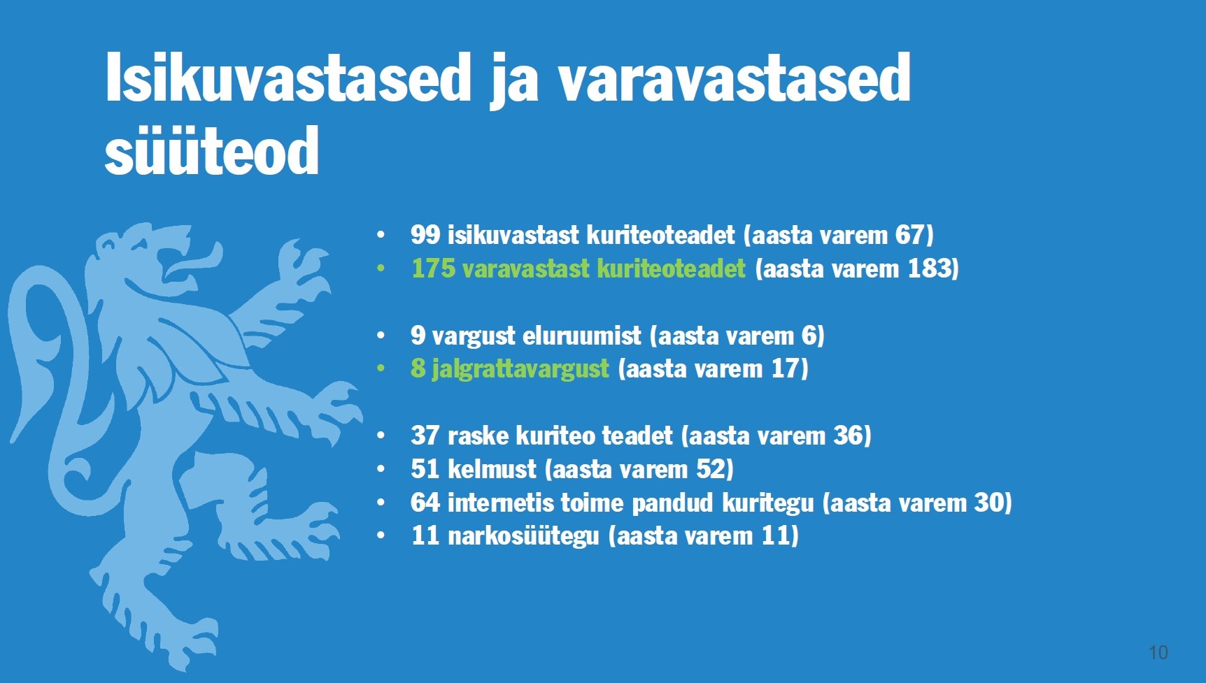 Täpsem statistika isiku- ja varavastast süütegudest ning kuritegudest: