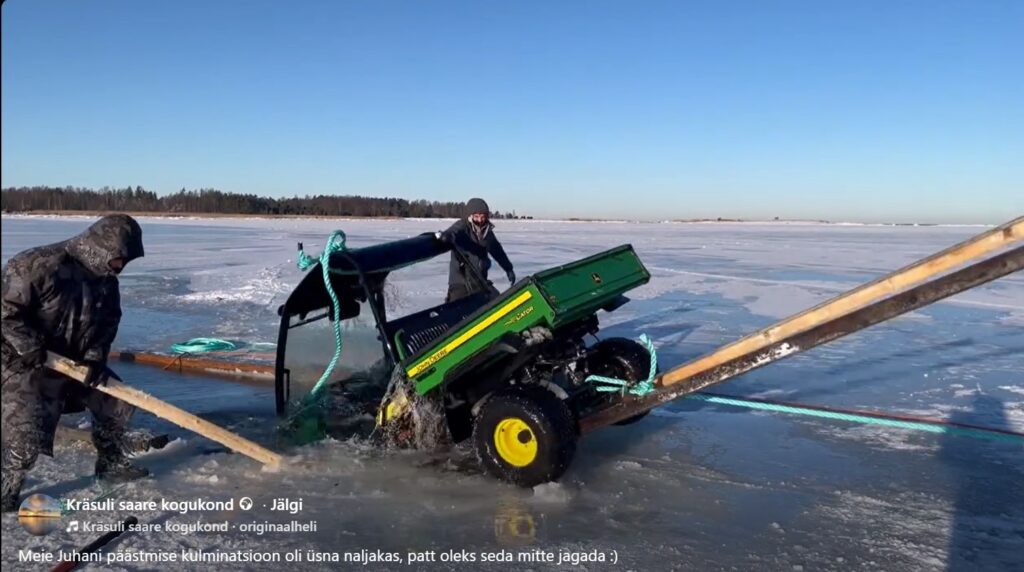 3. veebruaril on Kräsuli kogukond jaganud facebookis videoklippi merest uppunud John Deere aiatraktori merest väljaupitamisest:
