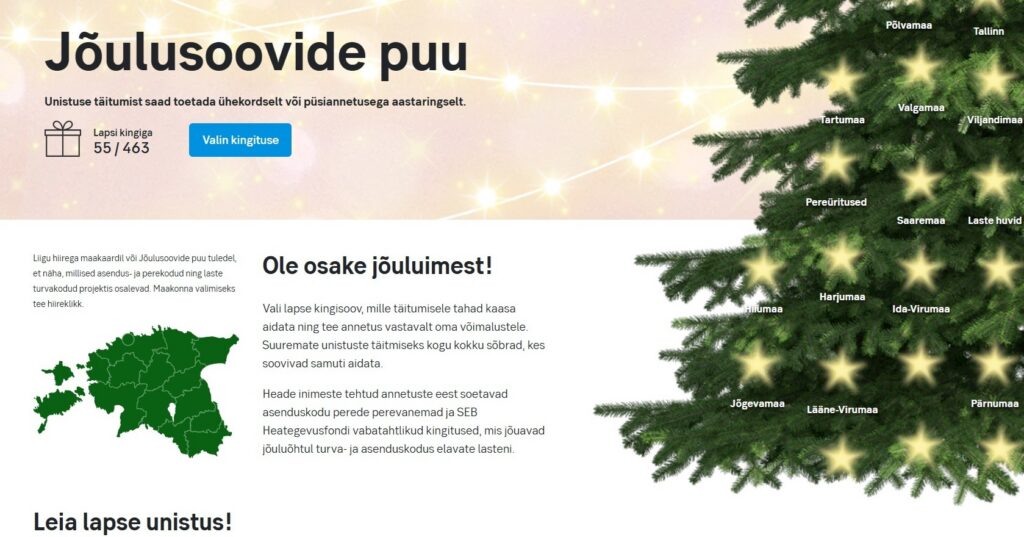 Tunnuspilt: kuvatõmmis SEB Heategevusfondi Jõulusoovide puu veebilehest.