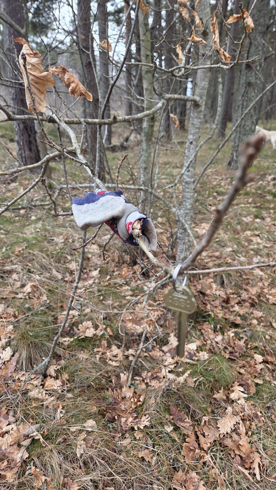 Samas oli kuidagi sees tunne, et ma saan selle võtme kätte, kuigi ei kujutanud veel ette kuidas. Ja näe, kuu hiljem sattusin kõndima jälle seda sama rada pidi ja näen eemalt, et mingi imelik asi on puu otsas. Lähemale jõudes näen, et sokk on seotud oksa külge ning kui juba puu juures olin, rippus mu koduvõti oksa küljes.