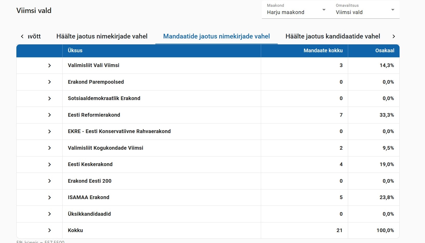 Vaata kõikide kandideerinud erakondade ja valimisiliitude tulemusi: