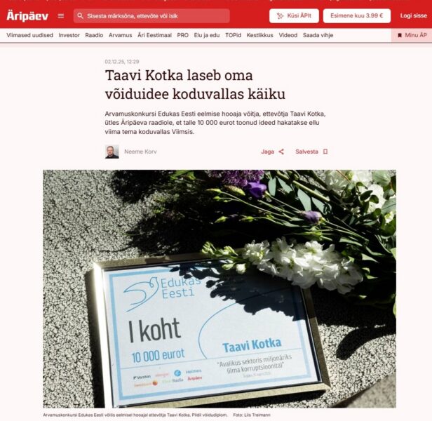 Äripäev: Taavi Kotka laseb oma võiduidee koduvallas käiku